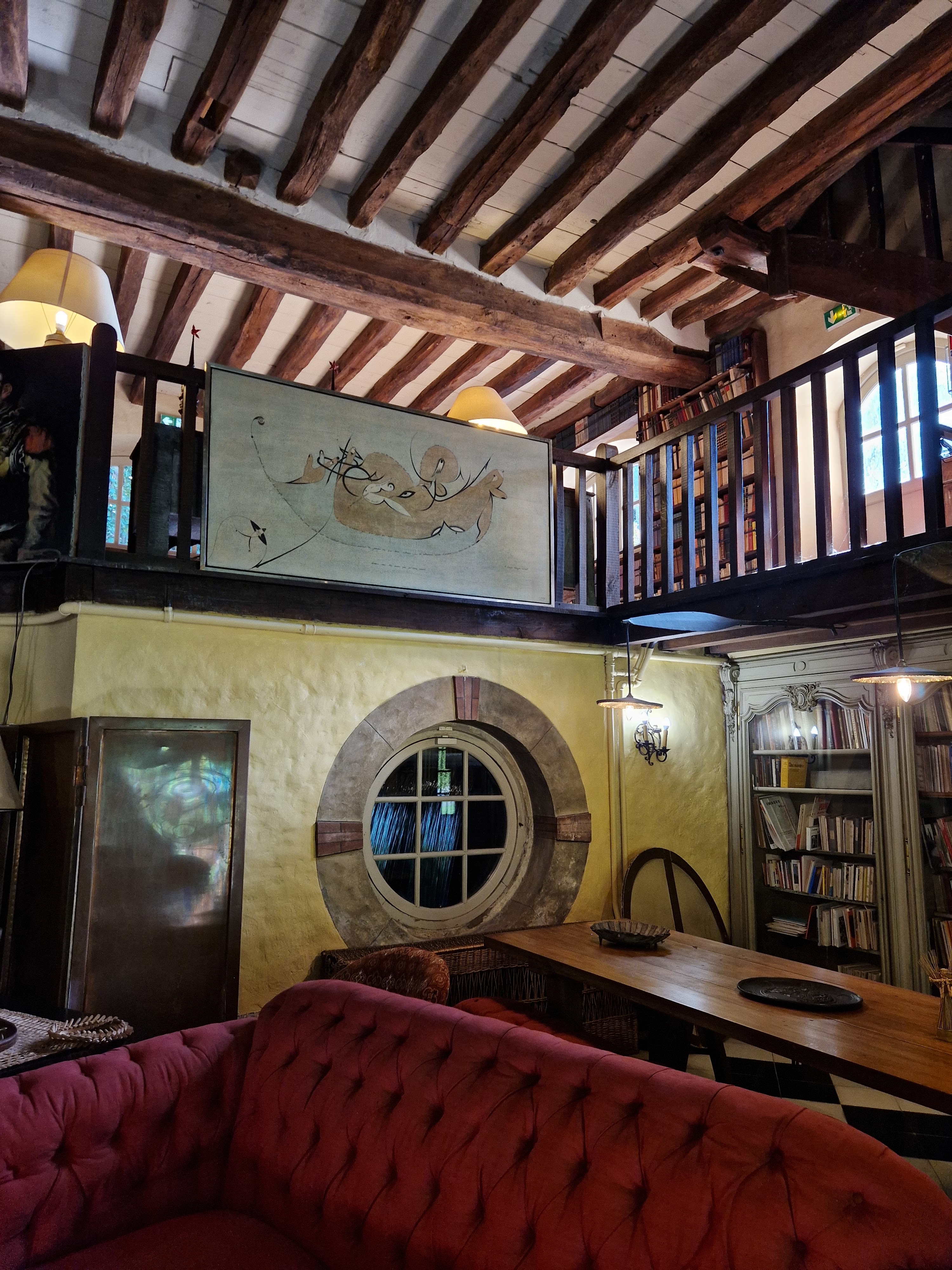 Après une visite du parc, dont la quiétude est contrariée par le bruit de la circulation automobile sur la RD 936 et de la circulation aérienne, Nous avons bénéficié d'une enrichissante visite guidée de la maison qui constituait la résidence secondaire du couple emblématique. L'intérieur est resté figé depuis le 16 juin 1970, date de la mort d'Elsa Triolet. Ce qui ajoute à l'intérêt des visiteurs.