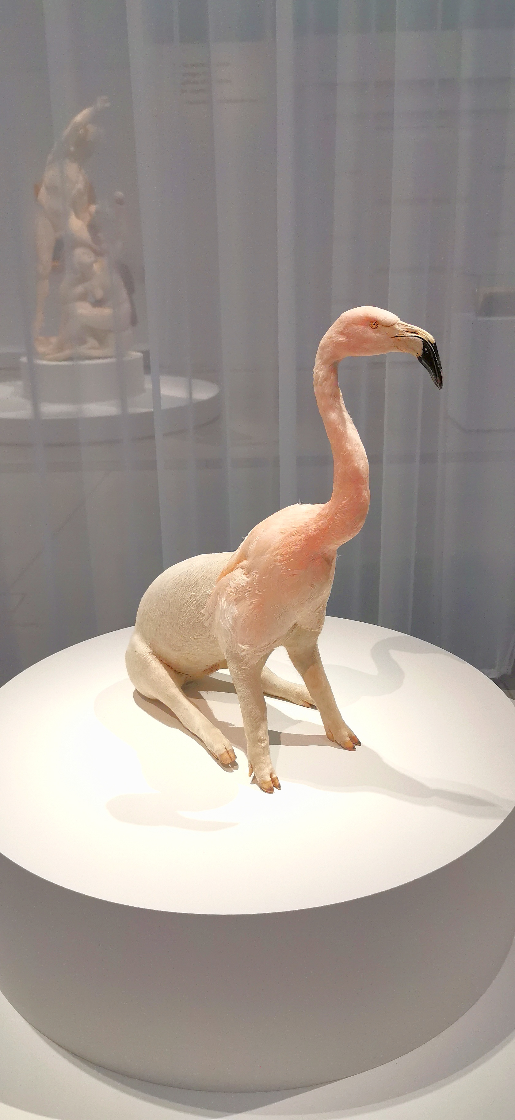 Sincèrement choqués par la TAXIDERMIE doublement malsaine présente au Louvre-Lens : le cadavre d'un véritable flamand-rose fixé au cadavre d'un porc ! (expo animaux fantastiques). Nos enfants l'ont très mal vécu sur place et au retour. Perturbé par ces vrais animaux, à la fois sans corps pour l'un et sans tête pour l'autre, et devant ces cadavres présentés à hauteur d'enfant d'école maternelle, le plus jeune s'est mis à pleurer sur place. En tant qu'adultes et parents, choqués nous le sommes aussi : à la fois devant ce triste et sordide spectacle qui gâche la visite et pour le manque de respect envers ces pauvres animaux ayant réellement existé. Si c'est également votre ressenti, merci d'oser l'exprimer et de le partager en avis pour sensibiliser le musée.